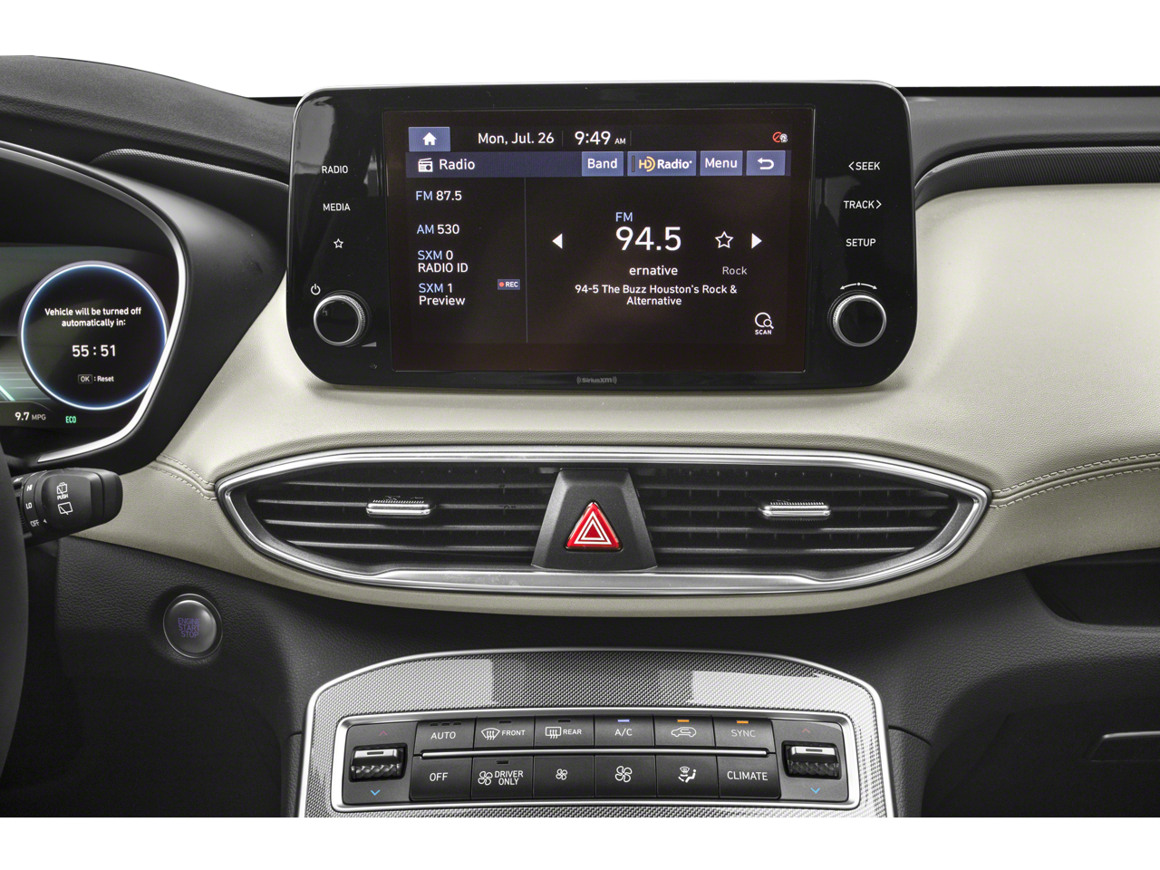 - Radio: AM/FM Display Audio -inc: 10.25" wide touchscreen, Apple CarPlay and Android Auto, Bluetooth hands-free w/wireless audio streaming, dynamic voice recognition, USB ports, SiriusXM, HD Radio, Blue Link connected car system, navigation system including traffic flow w/incident data via HD Radio (HERE), OTA updates (map only), rear seat quiet mode and steering wheel audio and phone controls